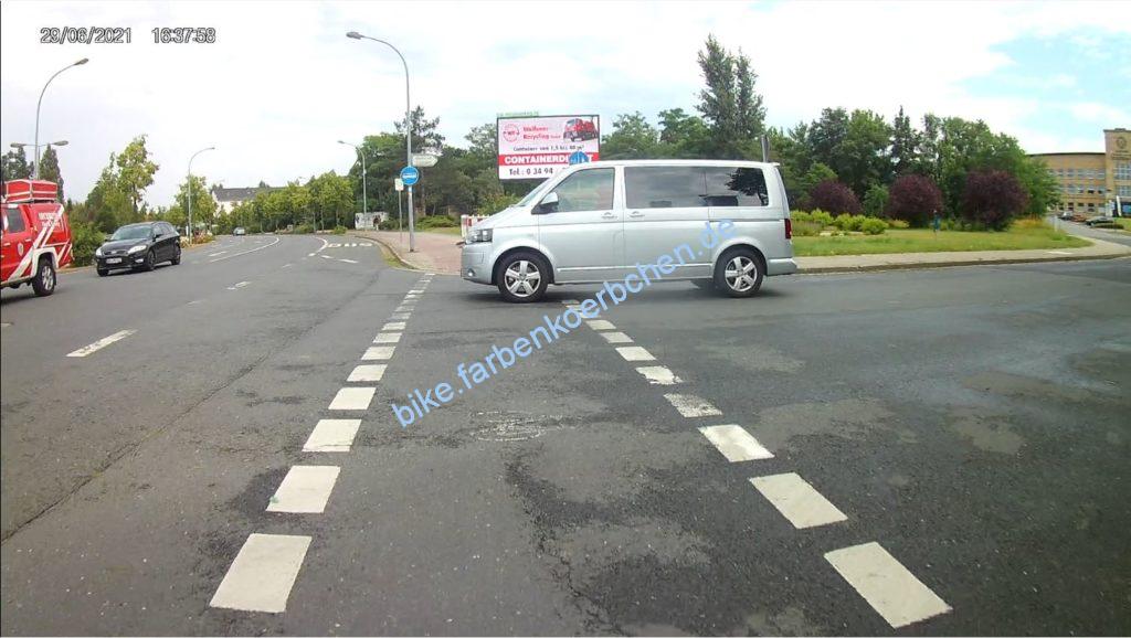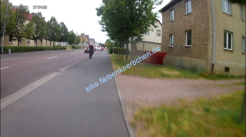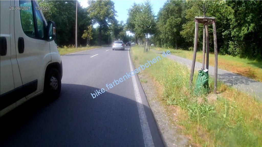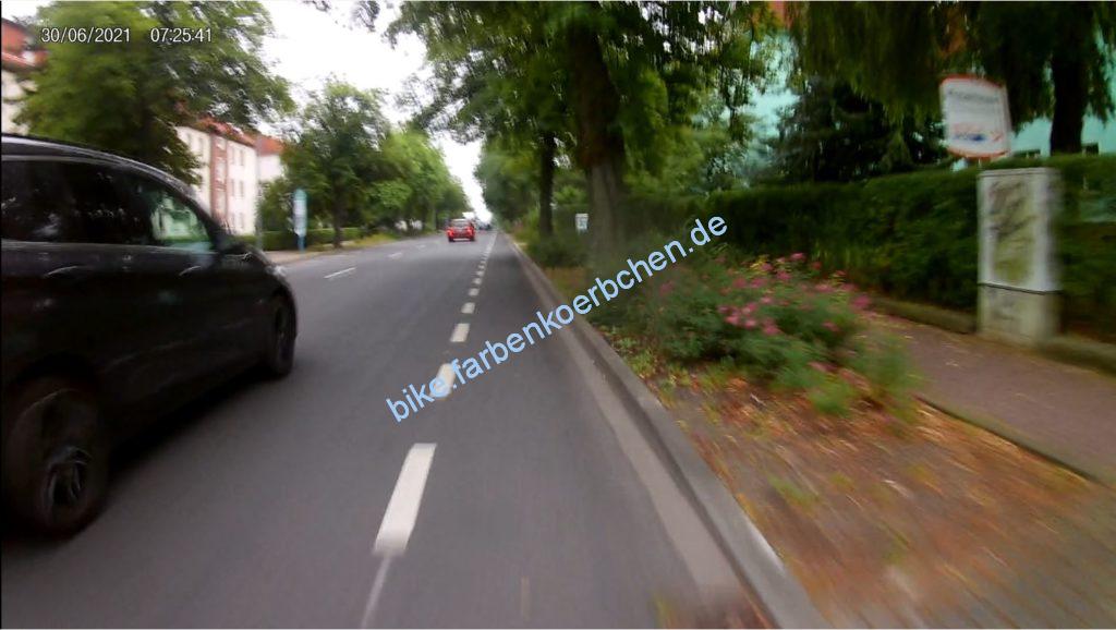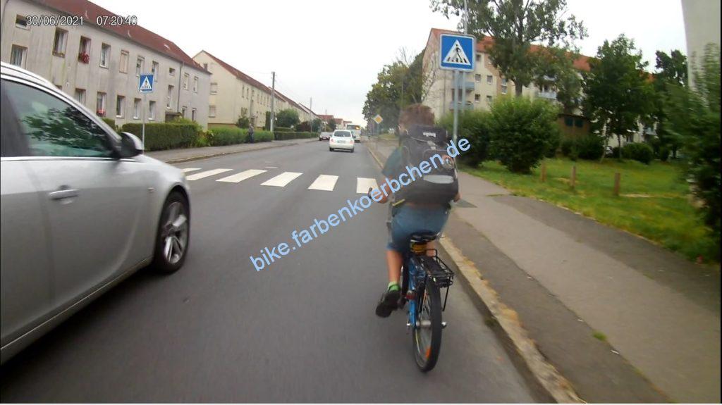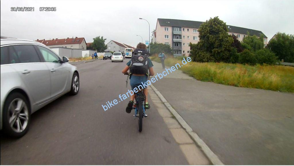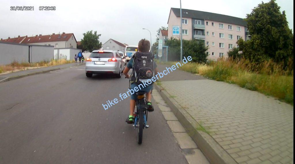 Am 30.06.2021 war es natürlich wichtig, mit dem Elterntaxi(Bild 1-3) erst knapp zu überholen um sich direkt hinter einem Bus an der Haltestelle vor uns zu quetschen – anschließend wurden wir natürlich auch noch knapp überholt. Bild 4: mal wieder ein Geisterradler.