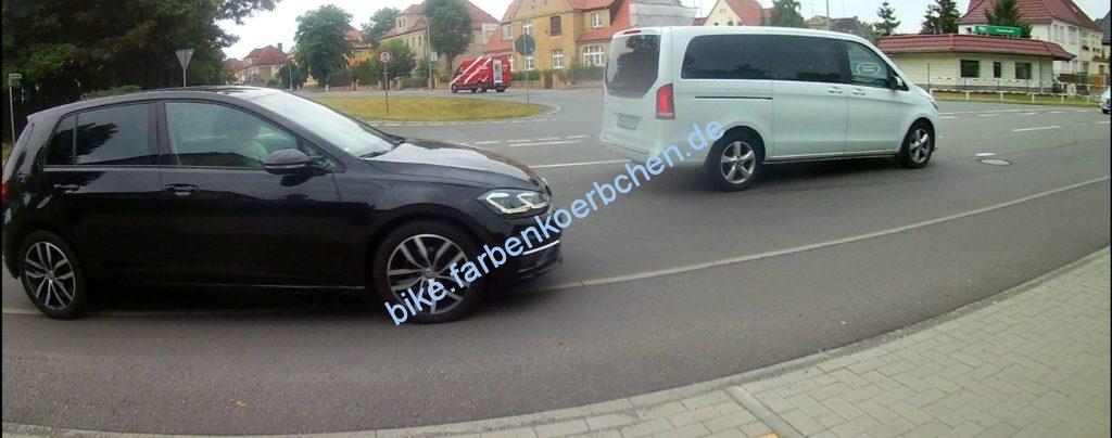 Aber es gibt auch positive Ausnahmen – dieser Fahrer ist sogar 1m zurückgefahren, damit ich ohne Gefährdung an ihm vorbeikomme – da bedankt man sich auch.