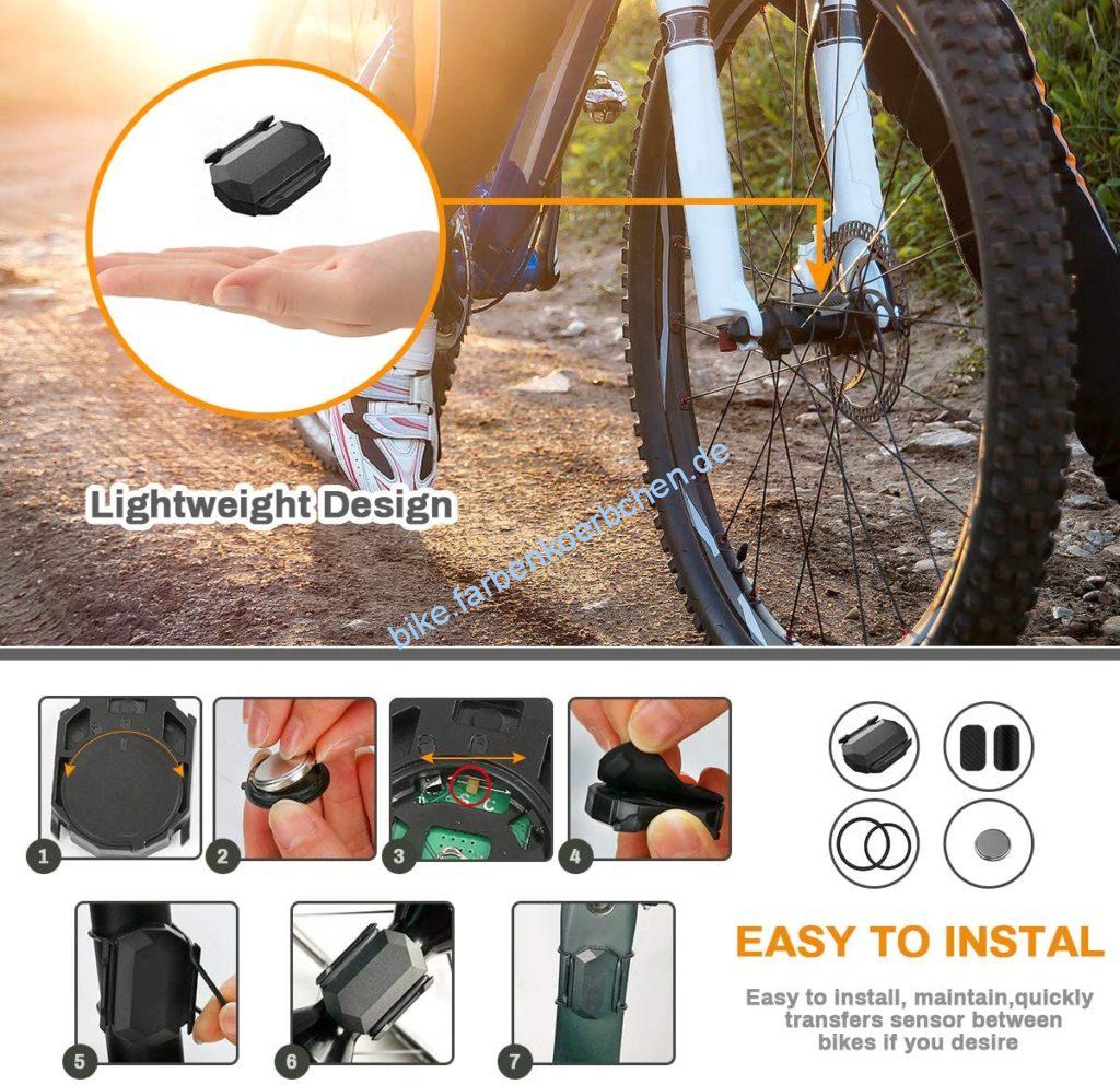 Der Sensor ist sowohl als Trittfrequenzsensor nutzbar, als auch als Geschwindigkeitssensor. Dazu wird der Sensor einfach auf der Radnabe befestigt und gibt dann bei jeder Umdrehung einen Impuls.