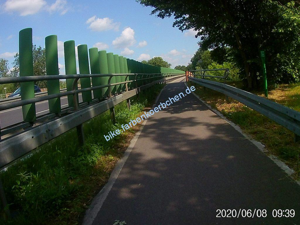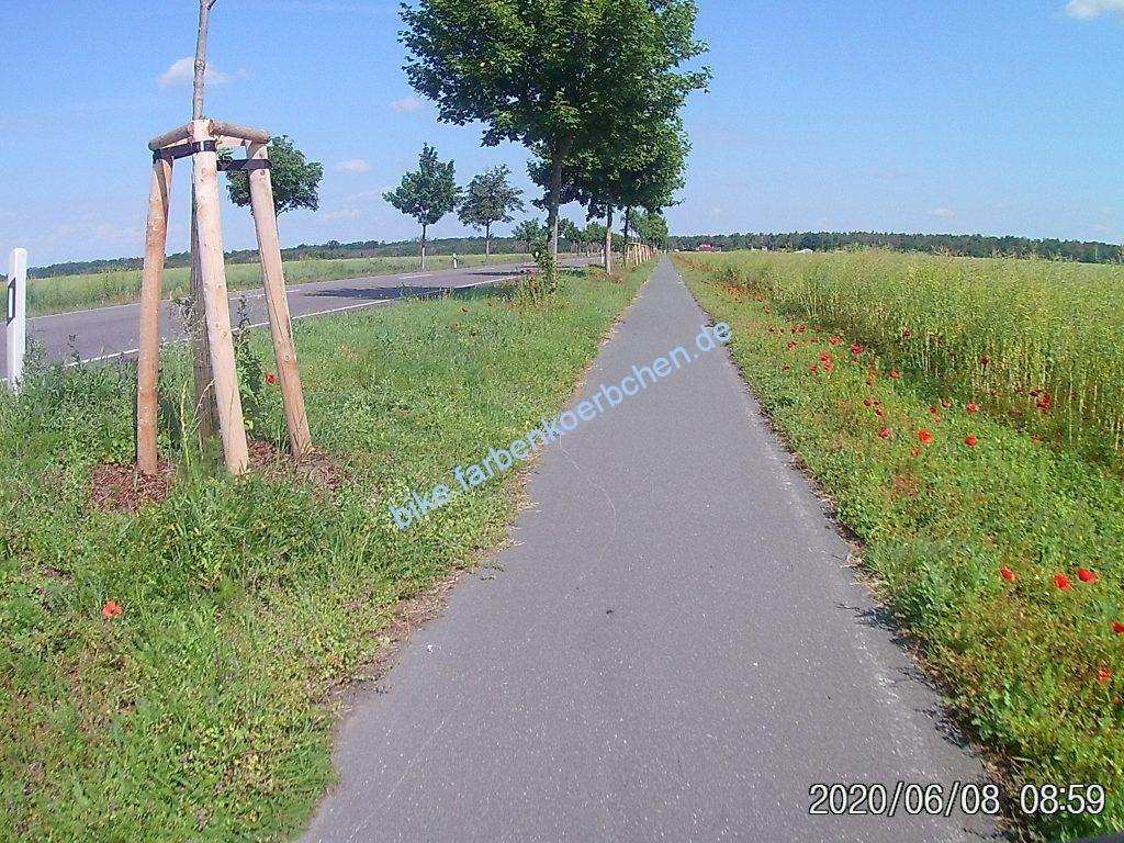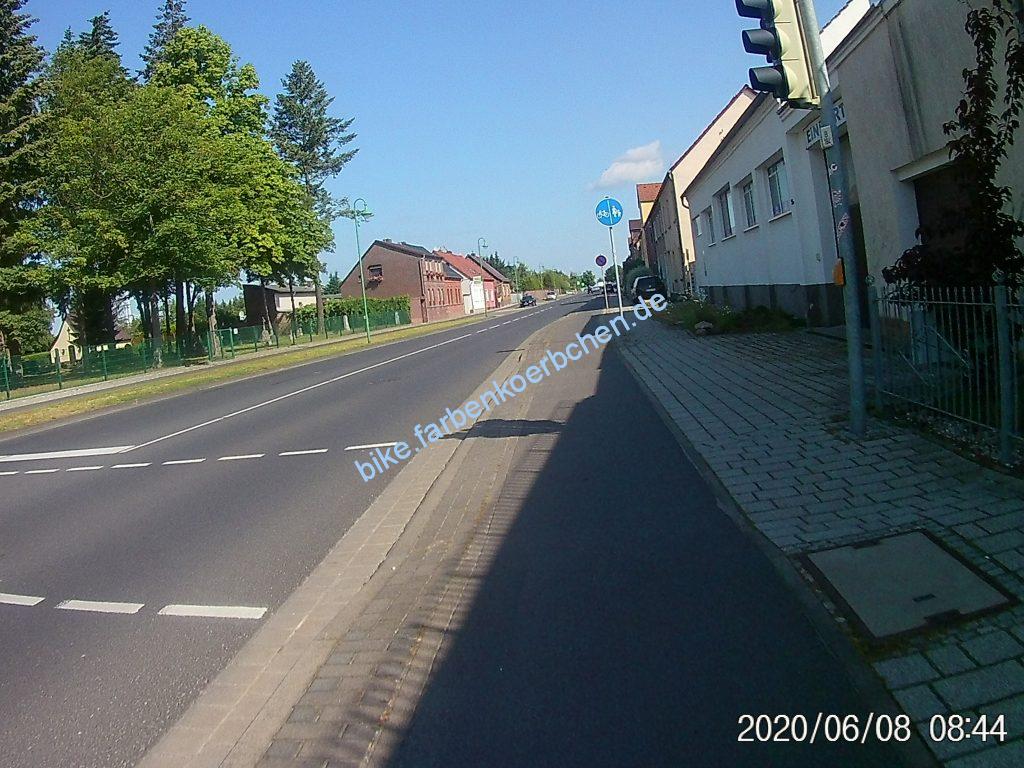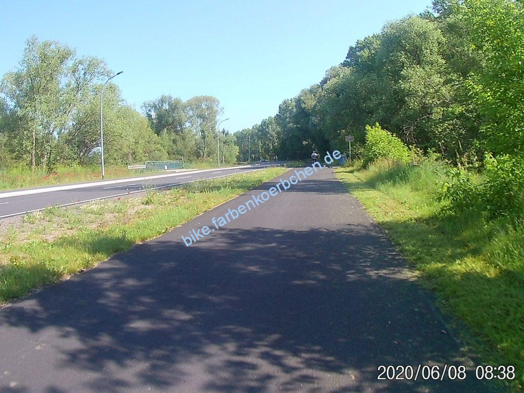 Danach ging es zurück. Der Rückweg verlief über weite Strecken über die B107, die zwar fast durchgehend ohne Radweg ist, aber dafür breit ausgebaut und somit mit Fahrrad gut befahrbar. Auf dem Rückweg gab es dann auch den höchsten Punkt der Strecke und kurz danach noch einen 2. höheren Punkt. War aber problemlos fahrbar. Ab der Überquerung der A9 ging es bis Coswig fast durchgehend bergab.