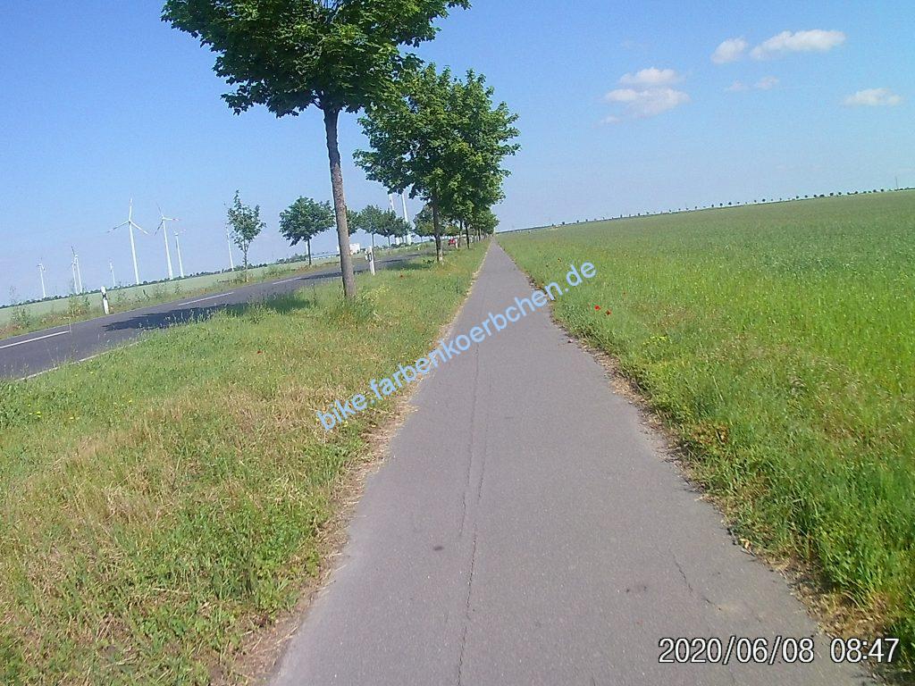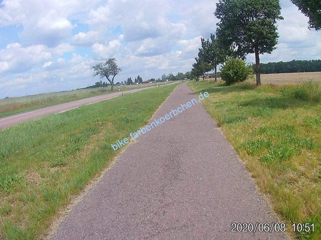Bis Wiesenburg war die Fahrt sehr entspannt und verging wie im Fluge – die reine Fahrzeit lag bei unter 3h für 65km, die Fahrt durch Dessau war da noch am Aufregendsten – Fußgänger auf dem Radweg und Radfahrer, die die gesamte Breite des Radwegs nutzen. auf den letzten 15 Minuten vor Wiesenburg hatte ich dann sogar noch einen Windschatten – ein anderer Radler, der zwar etwas schneller fuhr, als ich allein gefahren wäre, aber durch den Windschatten konnte ich dranbleiben. 1 Pause habe ich unterwegs gemacht, die war wiedermal kurz vor Thiessen, dazu kamen kurze Stopps um Fotos zu machen und etwas zu trinken.