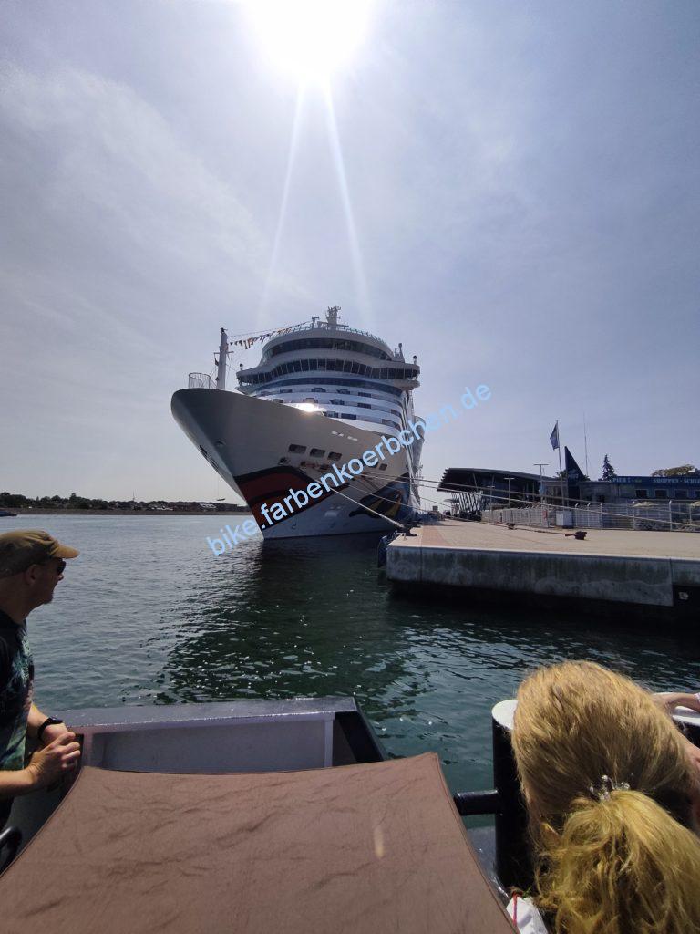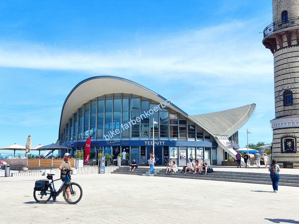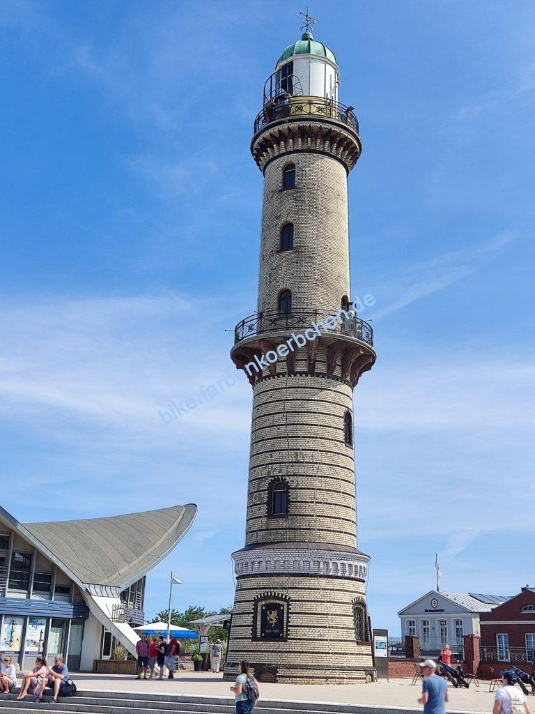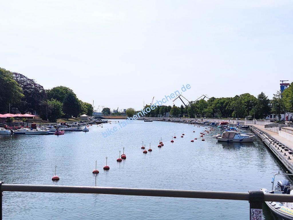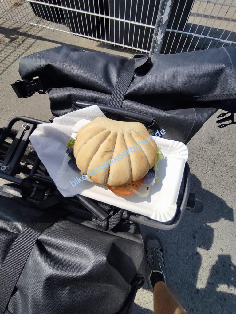 Von Kühlungsborn ging es auf dem Ostseeküstenradweg nach Warnemünde, dort über die Fähre „Hohe Düne“ nach Markgrafenheide. Vorab kann ich sagen: Das Fischbrötchen an der Fähre war das Beste in der ganzen Zeit. Kurz nach der Fähre ist die Halterung für das Handy gebrochen, ab da war das Handy dann in die Tasche verbannt und ich mußte mich auf die Line-Navigation des Fahrradcomputer verlassen. Dies funktionierte besser als erwartet und nur in Einzelfällen habe mal auf dem Handy nachsehen müssen. Die gebrochene Halterung ist also das 2. Opfer, was ich bringen mußte, denn das Headset hat den Regen nicht überlebt. Damit war ich also mit dreifachen Handicap unterwegs – keine Musik, keine Navigationsanweisungen und kein Blick aufs Handy bei der Fahrt.