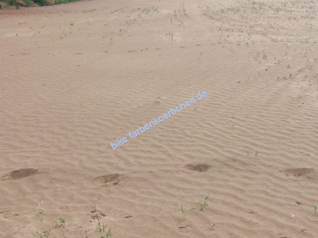 Ja, es gibt sogar Wanderdünen;-) Die gesamte Strecke völlig entspannt, auch über den Rügendamm – auf der anderen Seite bei Altefähr war erstmal Frühstück angesagt – ich habe Teils noch von den vorhandenen Reserven gelebt. Nach dieser ausgiebigen Pause fuhr ich weitestgehend entlang der Westküste von Rügen Richtung Norden, Rambin, Gingst und Trent lagen auf dem Weg zur Witower Fähre – die Wege selbst waren nicht so dolle, es war zwar Betonpflaster, allerdings teils sehr uneben, zum größeren Teil mit runder Oberseite – es war also fast wie Kopfsteinpflaster.